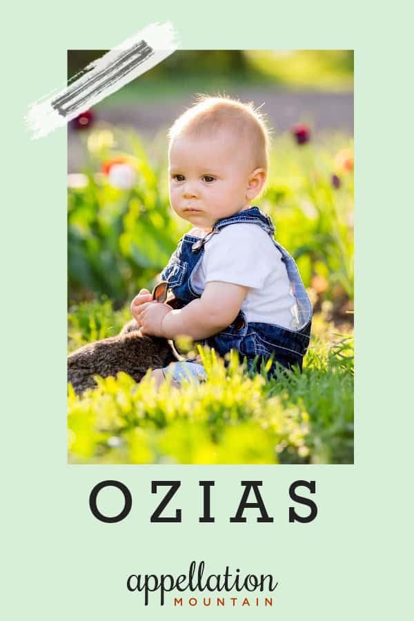 The baby name Ozias is rising in popularity for two reasons. First, we have embraced ancient boy names ending with S. Names Atticus and Elias are more popular than ever before, in the United States and elsewhere.