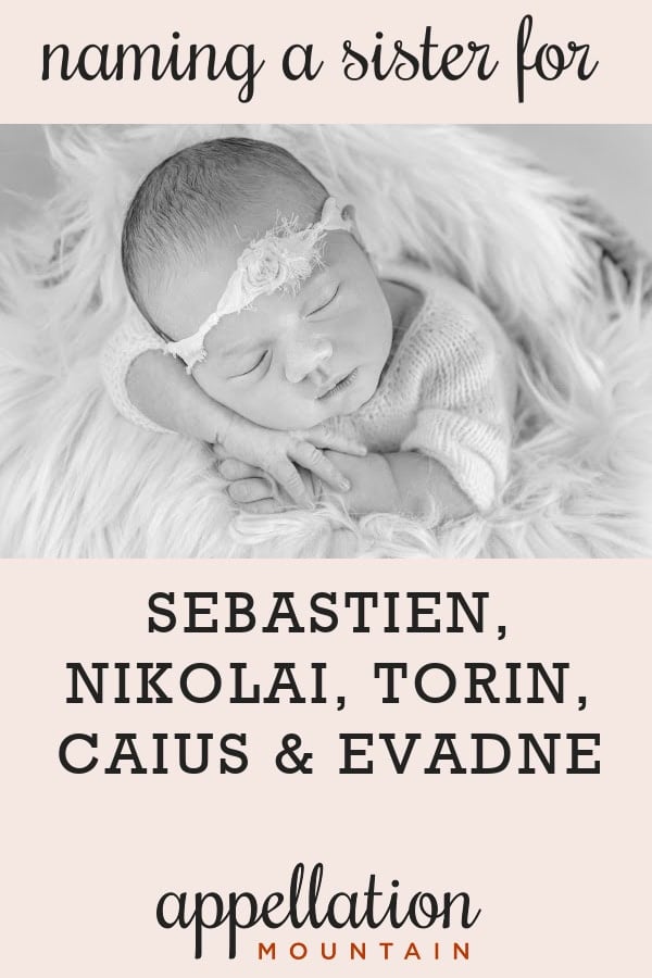 When it comes to names like Evadne, I think it’s tough to beat Romilly – especially with Caius, Torin, Nikolai, and Sebastien. And Romilly MiddleName Lark could be perfect.