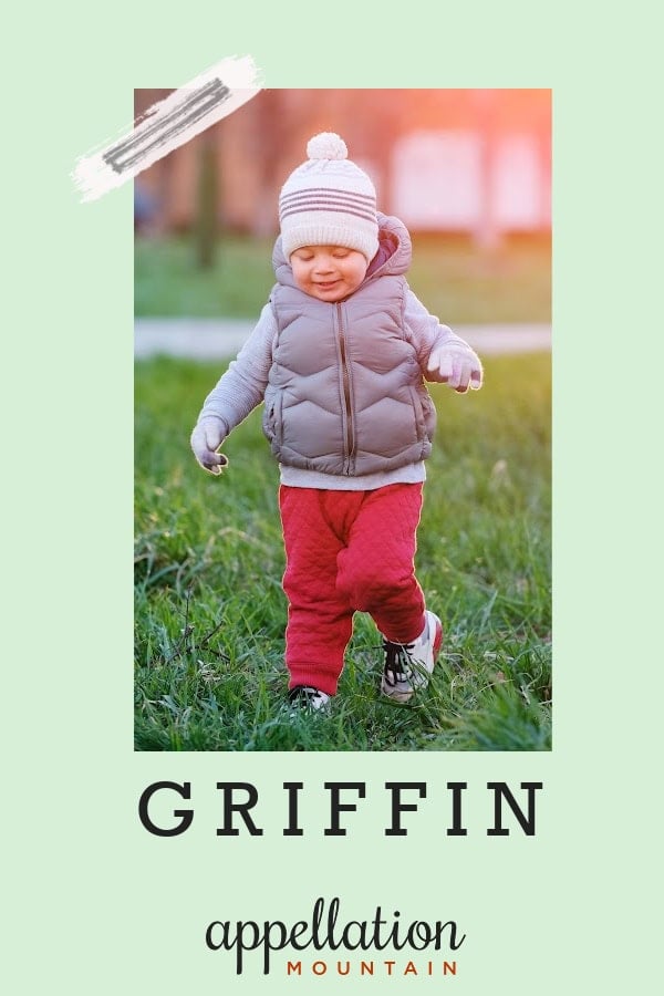 The baby name Griffin blends a strong sound and meaning with a touch of muscular fantasy. It’s hard to argue that a half eagle/half lion is anything other than fierce.