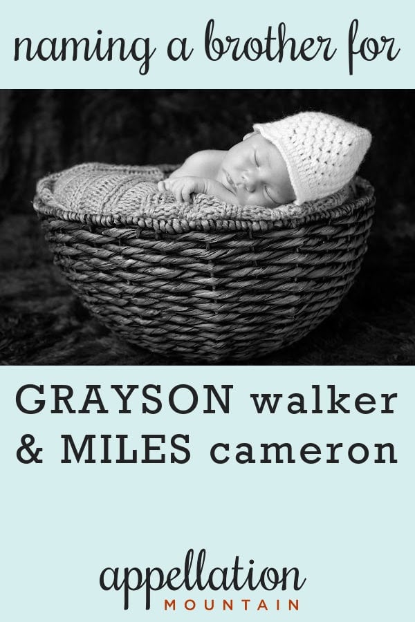Grayson Walker and Miles Cameron are great names for your boys. They’re polished and strong, a good mix of current trends and enduring style.